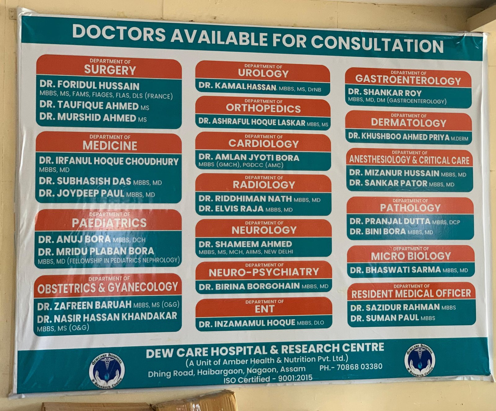 Dew Care Hospital & Research Centre is a unit of Amber Health and Nutrition Pvt Ltd, an ISO 9001:2015 certified premier healthcare organization of North-East India. Centrally located at Dhing Road, Haiborgaon, Nagaon, Assam.